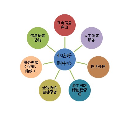 4S店是集汽車銷售、維修、配件和信息服務為一體的銷售店。4S店是一種以“四位一體”為核心的汽車特許經營模式,包括整車銷售、零配件、售后服務、信息反饋等。為了承載4S服務,銷售商一般會設置4個對外部門,這些部門與呼叫中心有關,如: