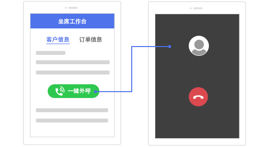 坐席需在 App 中外呼用戶電話,即可從 App 調起小程序發起外呼。